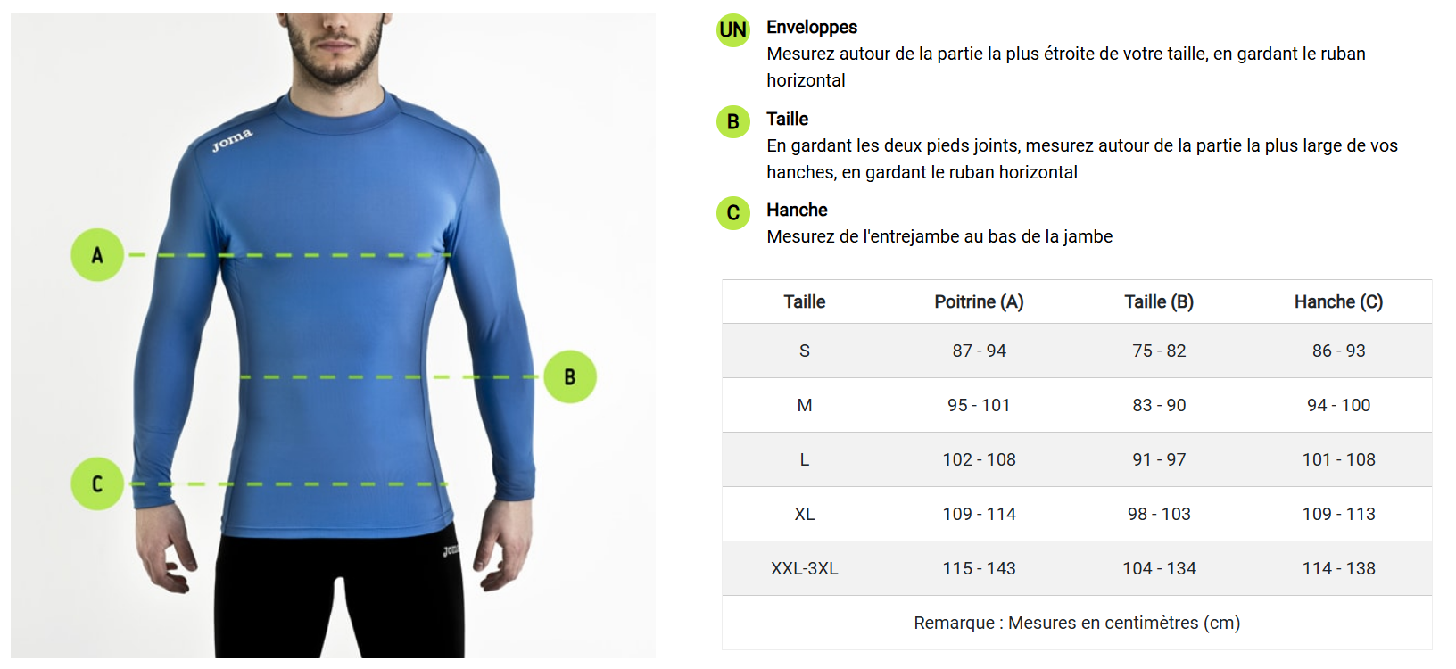 Vous pouvez également vous référez aux guides des tailles de la marque Joma ci-dessous.
